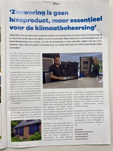 Geen luxe, maar essentieel, dat is de boodschap die Thomas en Lotte van Intershades gaven in het Dalfsennet magazine. Zonwering wordt steeds belangrijker. Niet alleen tijdens warme perioden om de warmte buiten te houden, maar ook in het vroege voorjaar kan de temperatuur al behoorlijk oplopen in woningen die goed geïsoleerd zijn. Als de warmte eenmaal binnen is, is het lastig de warmte er weer uit te krijgen. Ook wordt er in het artikel aandacht besteedt aan zonweringsystemen met solar opties (met zonnepaneel).