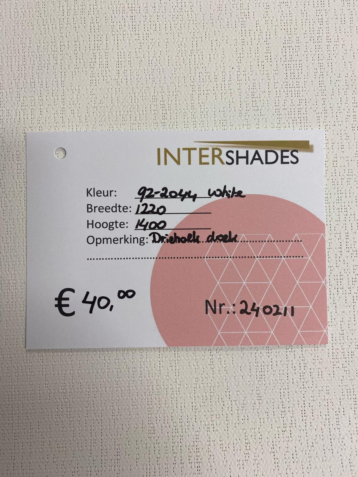 Opmerking: Doek in driehoek vorm.