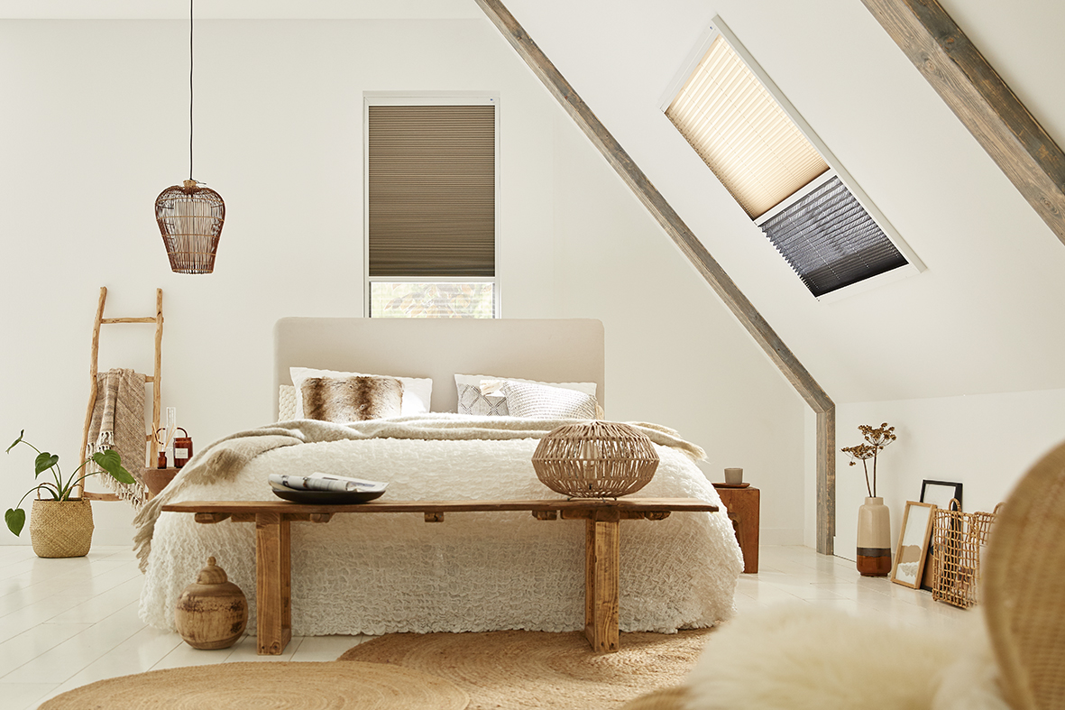 Supplente – Raamdecoratie en hor in één van Keje is de perfecte oplossing voor ramen die naar buiten opengaan en bijvoorbeeld dakramen. Je slaat twee vliegen in één klap, raamdecoratie en hor in hetzelfde systeem. De Supplente monteer je met schroeven “op de dag”, dat wil zeggen op het kozijn (of op de muur). Het voordeel van de Supplente is dat het systeem zowel raamdecoratie als een hor bevat. Wil je even geen hor, dan vouw je de plisséhor in met de geïntegreerde treklijst en vouw je juist de raamdecoratie uit. Wil je echter de hor en geen raamdecoratie? Dan klap je de plissé hor uit en de raambekleding in. Ideaal! Als je de Supplente in je slaapkamer gebruikt, kan je hierdoor ook goed een verduisterende stof voor ’s nachts combineren met een hor.